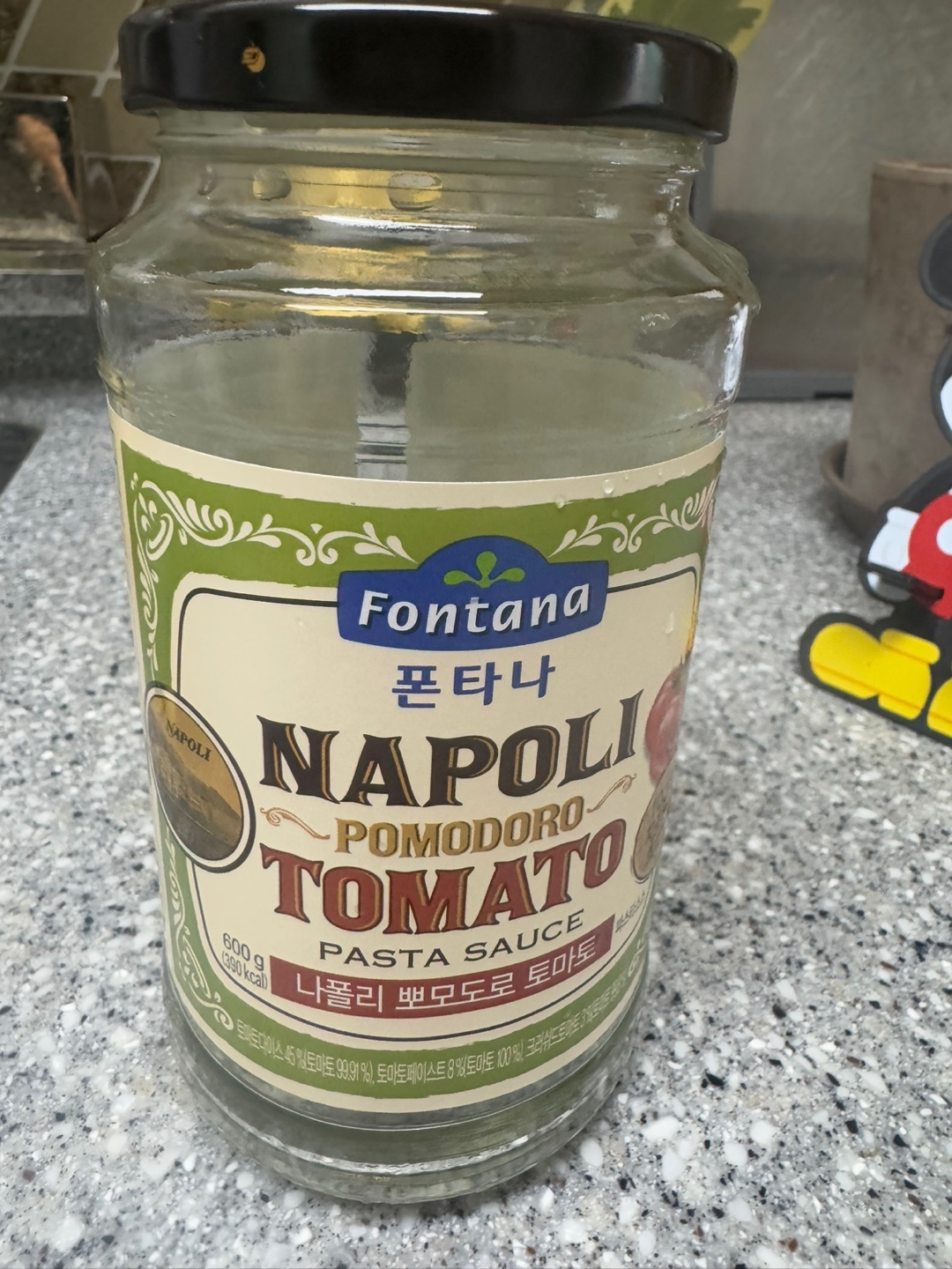 토마토파스타소스 한병 마트에서 싼 걸로 사 왔습니다.